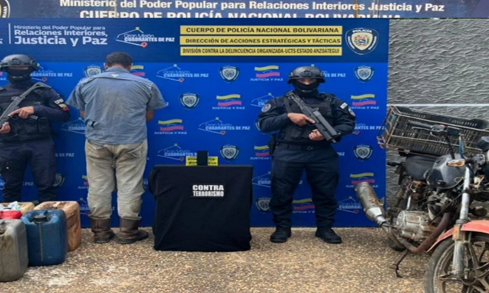 Funcionarios de la División Contra la Delincuencia Organizada del Cuerpo de Policía Nacional Bolivariana (CPNB) del estado Anzoátegui, lograron la aprehensión en flagrancia de un ciudadano con amplio prontuario policial, quien presuntamente se dedicaba a la extracción y comercialización ilícita de líquido carburante.