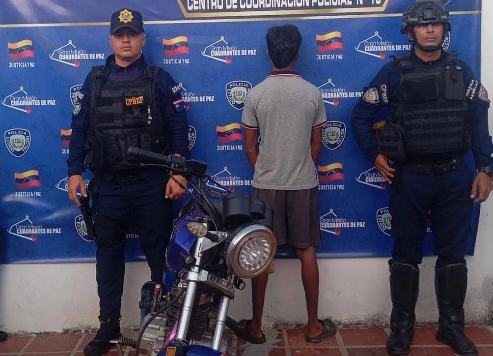 La motocicleta fue incautada y Medina fue trasladado al Centro de Coordinación Policial #16 a cargo de la Com.Jefe Lcda Dámaris Rodríguez ubicado en el Municipio Mene Mauroa, donde se continuará con el proceso correspondiente.
