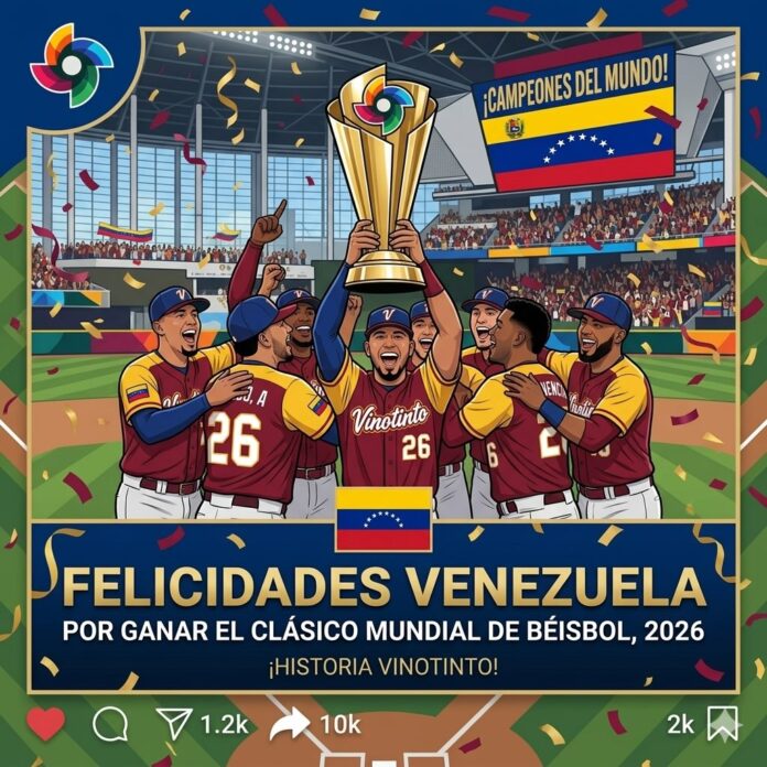 La selección venezolana de Beisbol levantó el trofeo del Clásico Mundial de Beisbol 2026 en lo que ha sido la noche más memorable en la historia del deporte nacional, en lo que fue una cierre de jornada inolvidable para el país.