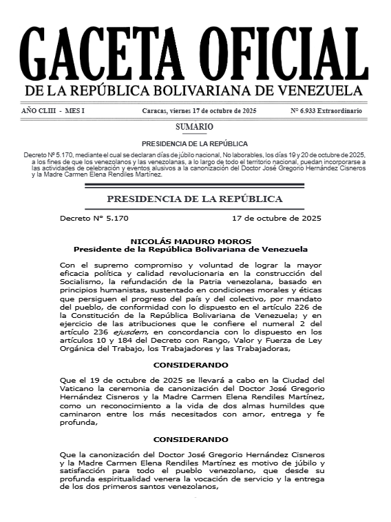 Los bancos en Venezuela, del sector privado, no ofrecerán atención presencial los días 19 y 20 de octubre, declarados de júbilo nacional con motivo de la canonización de los primeros santos venezolanos, el Doctor José Gregorio Hernández y la Madre Carmen Rendiles. En contraste, los bancos estatales operarán sus agencias con normalidad, según confirmaron fuentes del sector financiero al medio Banca y Negocios.
