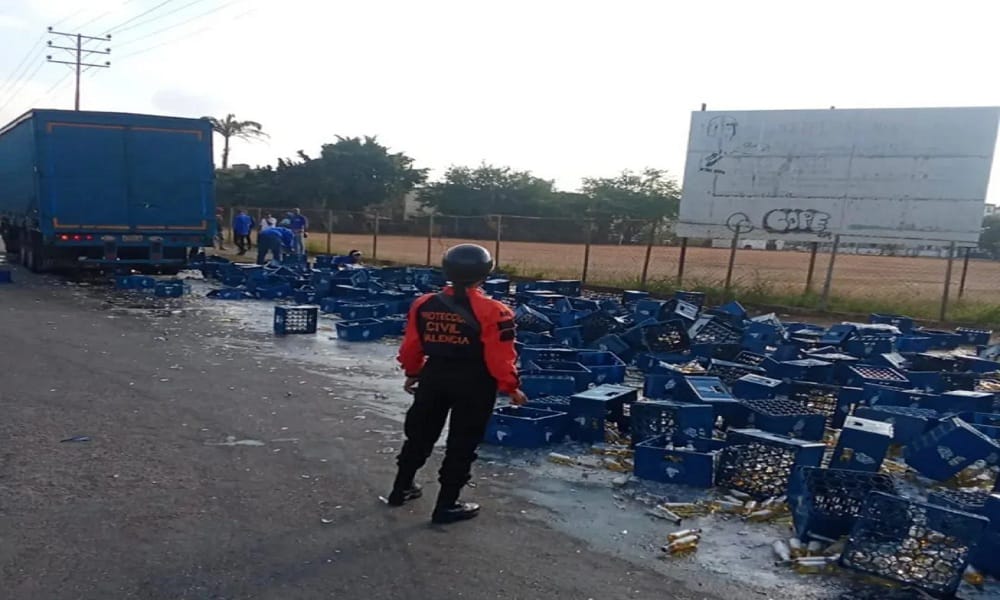El conductor de un camión de la Empresa Polar perdió la carga en un hecho vial registrado cerca de la autopista circunvalación sur, frente al campo de béisbol de la urbanización Los Caobos, estado Carabobo.