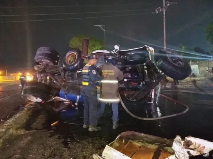 El incidente involucró a un camión tipo Volteo, el cual perdió el control y volcó, impactando contra un Expreso que circulaba en sentido hacia el Campo de Carabobo.