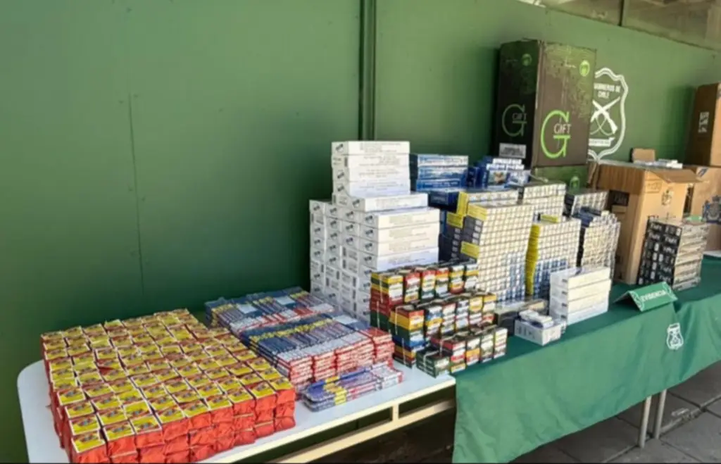 Entre los productos decomisados, el oficial de la 2ª Comisaría de Santiago especificó que se trata de “más de 5700 cajetillas, 880 unidades de fuegos artificiales y más de 170 vaporizadores de marihuana”, lo que genera un total de valor estimado de $15.376.000.