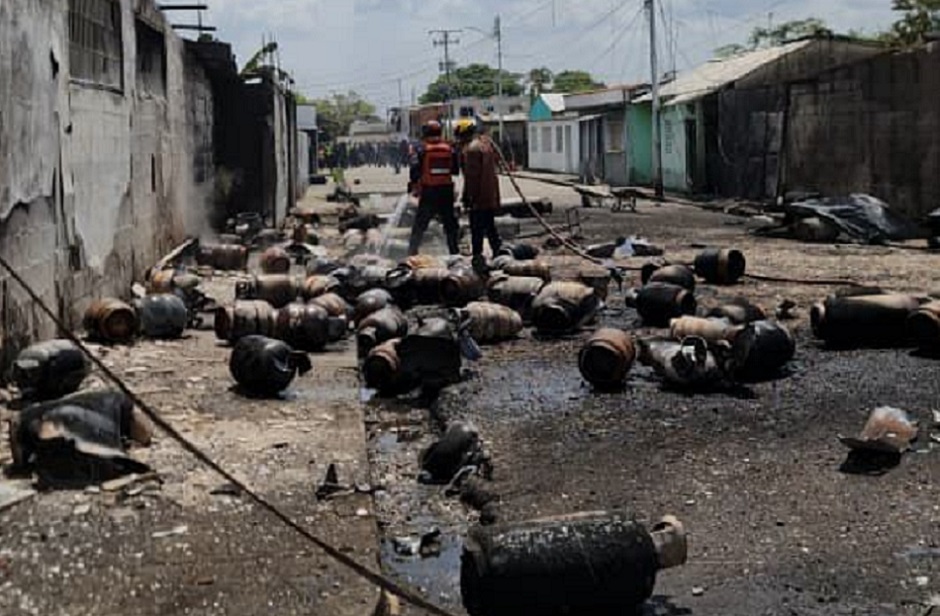 Funcionarios del Cuerpo de Bomberos y Protección Civil del estado Cojedes, acudieron al llamado de emergencia en la comunidad El Chuchango de la ciudad de San Carlos, debido a una explosión masiva de cilindros de gas.