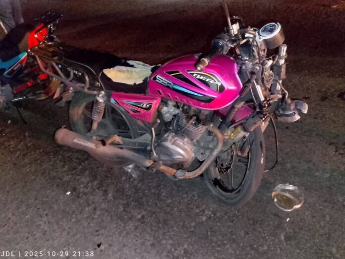 A pocos minutos para las 10:00 de la noche del miércoles 29 de octubre se suscitó una colisión entre motos que dejó a uno de los conductores lesionados.