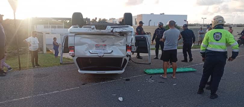 El accidente tipo colisión con vuelco ocurrió a las 5:40 de la tarde de acuerdo al reporte de las autoridades de la Policía de Falcón.