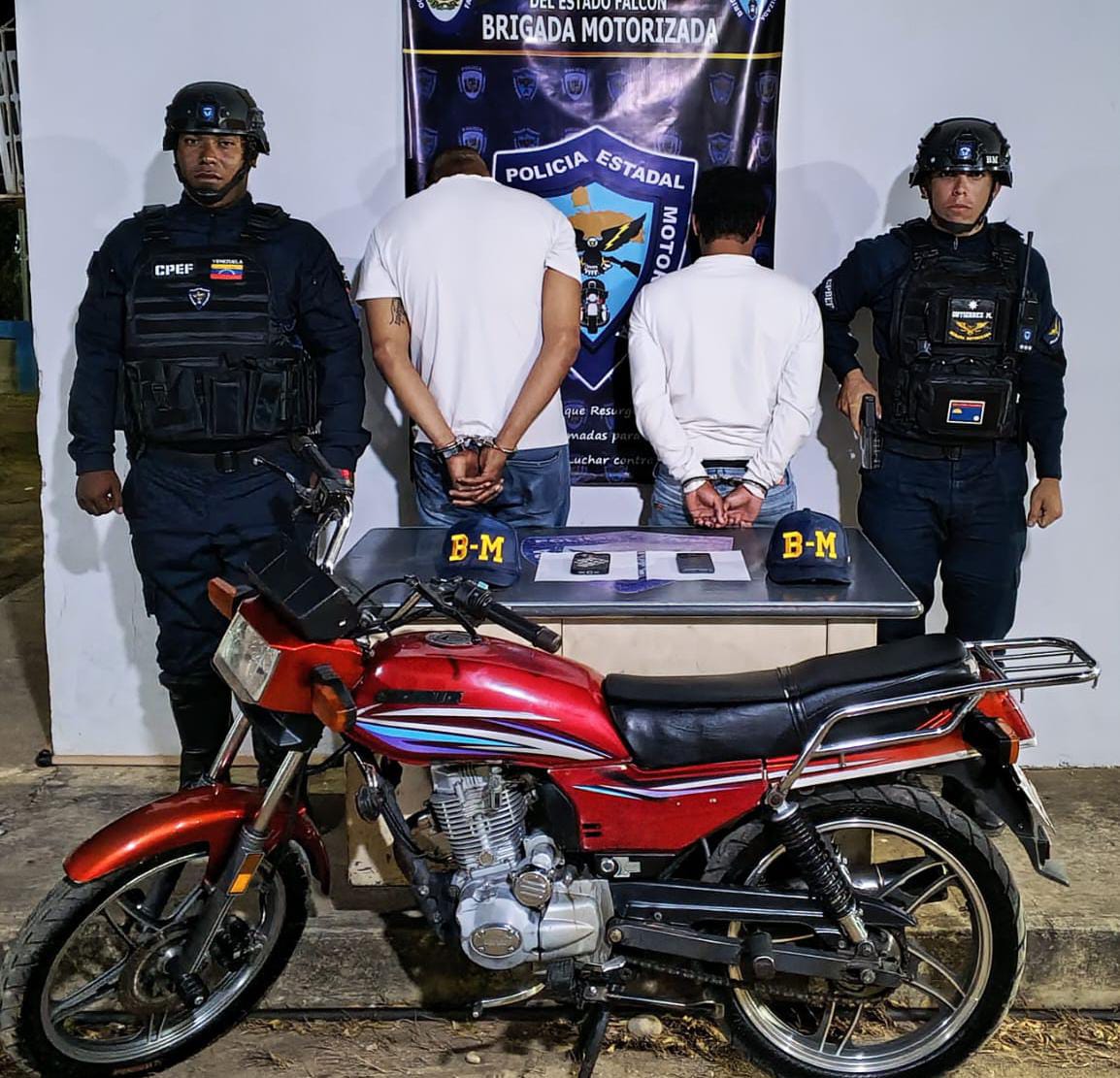 En labores de patrullaje por parte de funcionarios de la Brigada Motorizada de la Policía de Falcón en el sector Zumurucuare, logran avistar al par de motorizados quienes al observar a los uniformados emprenden la huida.