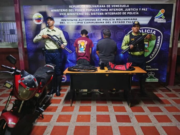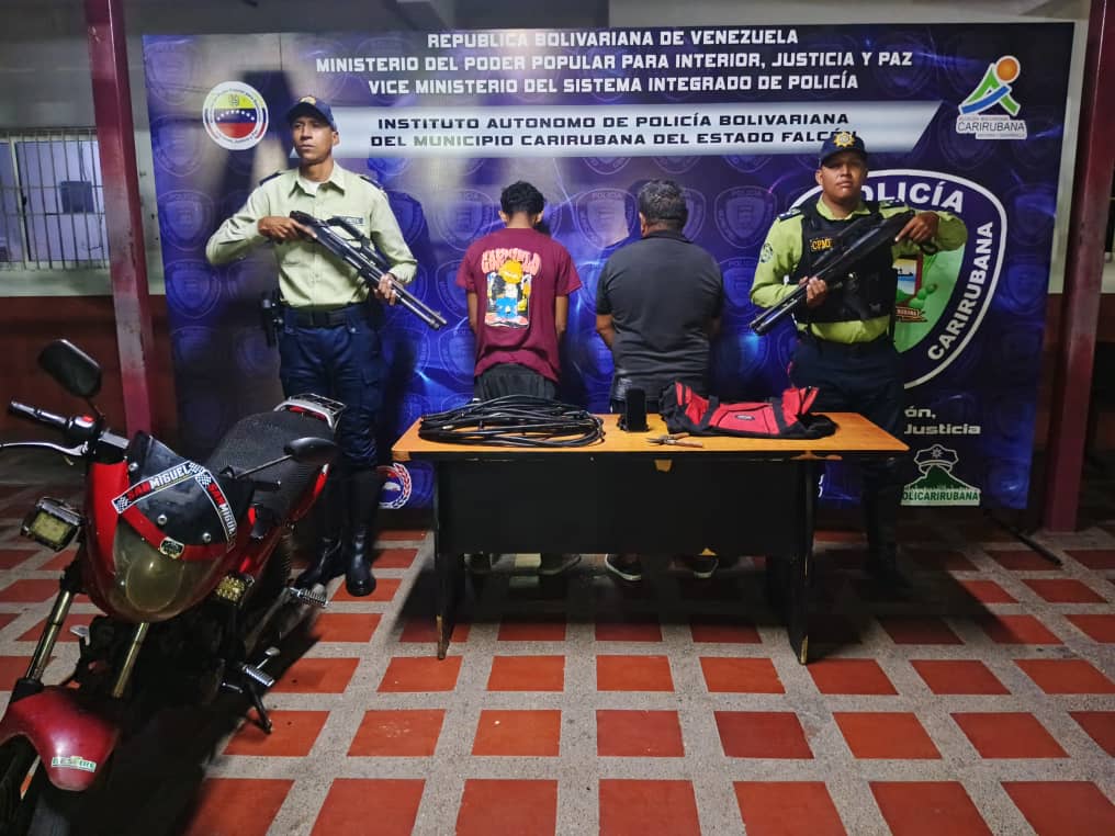 La Policía Municipal de Carirubana aprehendió a dos hombres por hurto de material estratégico en la avenida Ollarvides con calle Román del sector Puerta Maraven.