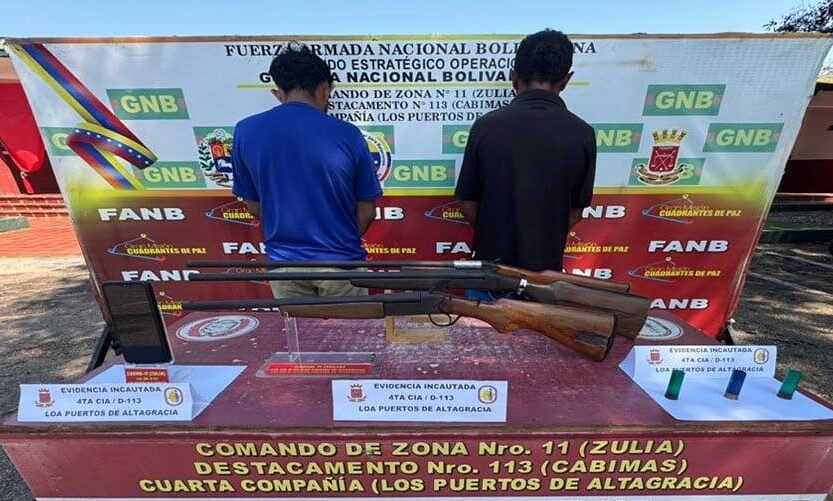 Según destacó Hernández Lárez, durante el operativo fueron aprehendidos Rubén David Cuauro Akles y Juan De Eudes Cuauro Miquelena, quienes estaban armados mientras deambulaban por la zona. Ambos quedaron bajo custodia por porte ilícito de armas de fuego.
