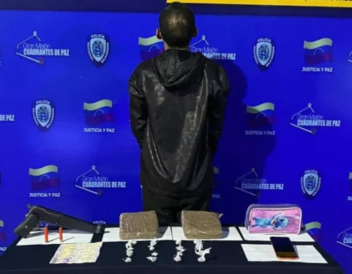 En el sector Curazaito, efectivos del DIE PNB-Falcón detuvieron a una persona involucrada en microtráfico de drogas y tenencia ilegal de un arma de fuego. Durante la operación se incautaron 2 panelas y 16 envoltorios tipo cebolla de marihuana con un peso total de 814 gramos, además de un arma de fuego y dos municiones.