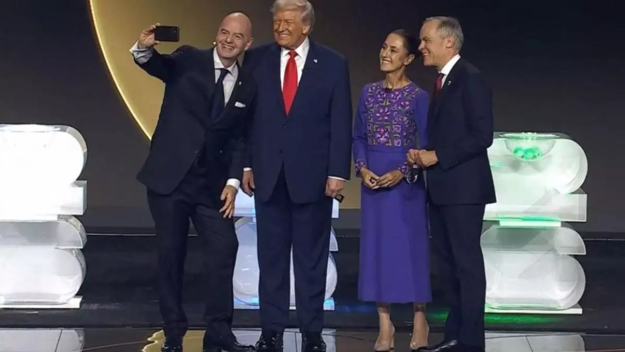 Gianni Infantino volvió a tirar de su arma favorita, el espectáculo, para firmar la imagen más simbólica del sorteo del Mundial 2026: un selfie en el escenario con Donald Trump, Claudia Sheinbaum y el primer ministro canadiense Mark Carney, los tres líderes de los países anfitriones, después de días de dudas sobre si la presidenta mexicana acudiría a Washington por la tensión política con Estados Unidos.