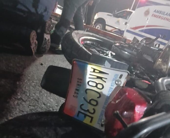 Un accidente de tránsito tipo colisión entre moto y vehículo dejó dos lesionados la mañana de hoy domingo 1 de febrero.