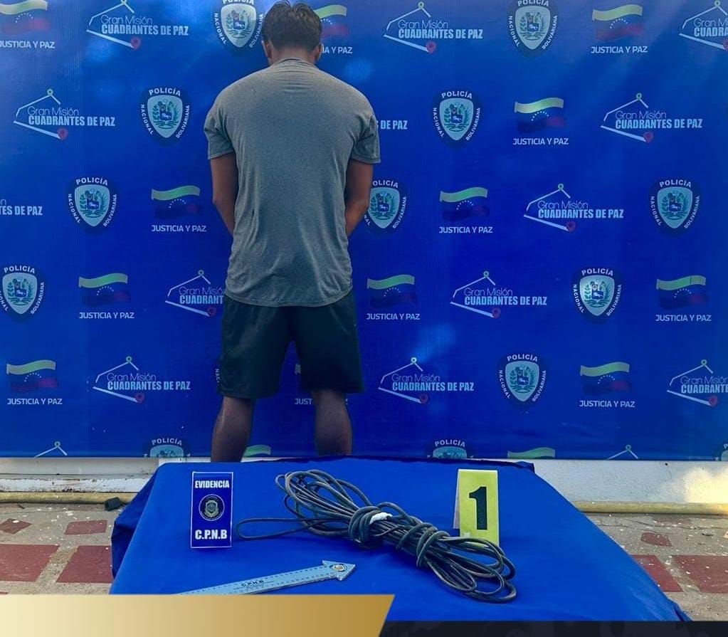 Luisver José Riquelme Rosendo quedó detenido este domingo 15 de marzo en la calle 7 del sector Los Rosales de Punta Cardón en el municipio Carirubana por hurto de bajante (conductor eléctrico).