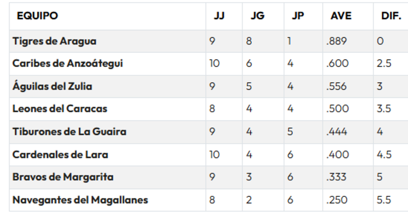 Tigres de Aragua sigue dominando sin contemplación las primeras de cambio en esta campaña de la LVBP tras derrotar a Navegantes del Magallanes 3-2.