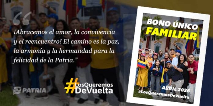 El Sistema Patria arrancó hoy martes 7 el pago del «Bono Único Familiar» correspondiente al mes de abril de 2026.