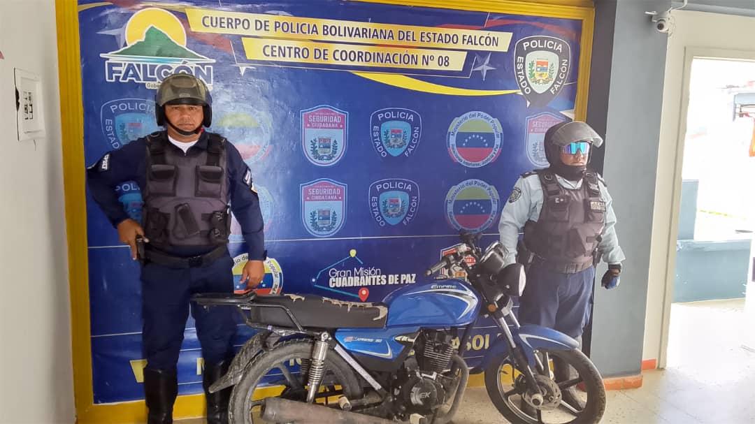 En labores de patrullajes, funcionarios del Centro de Coordinación Policial Número 8 bajo la supervisión del Comisario Jefe, Magíster Leonel Guanipa, logran la retención de una moto que fue abandonada por un par de antisociales.