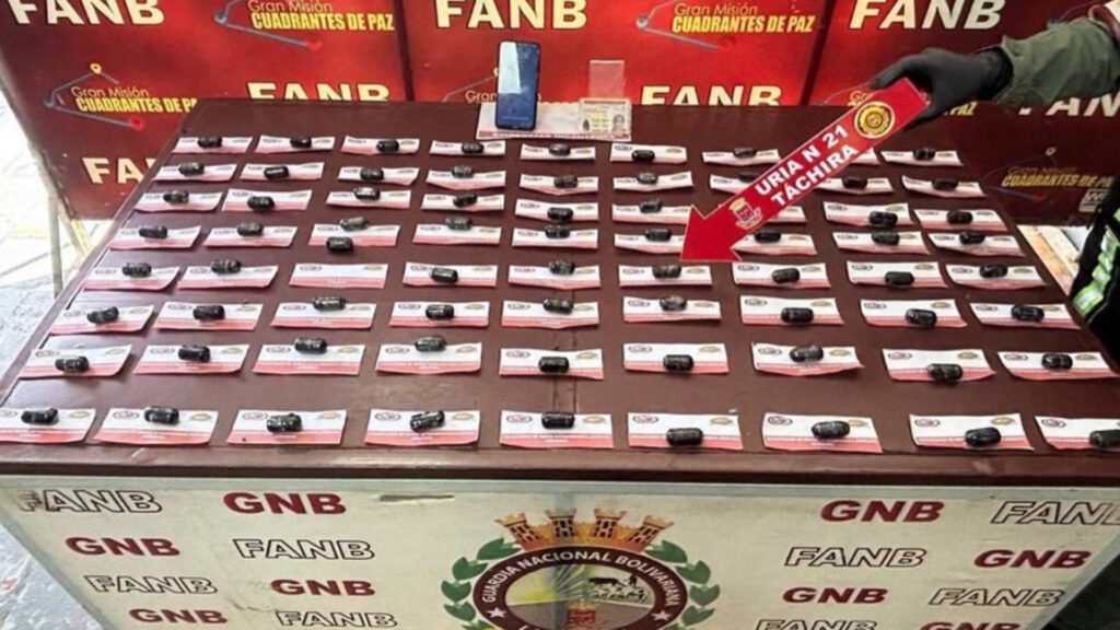 Este procedimiento fue realizado por funcionarios de la Fuerza Armada Nacional Bolivariana (FANB) en el estado Táchira. La mujer fue sorprendida traficando 855 gramos de cocaína de manera intraorgánica.