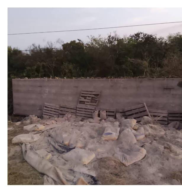 El cemento esparcido y una gran parte fue sustraído por los habitantes de la zona.