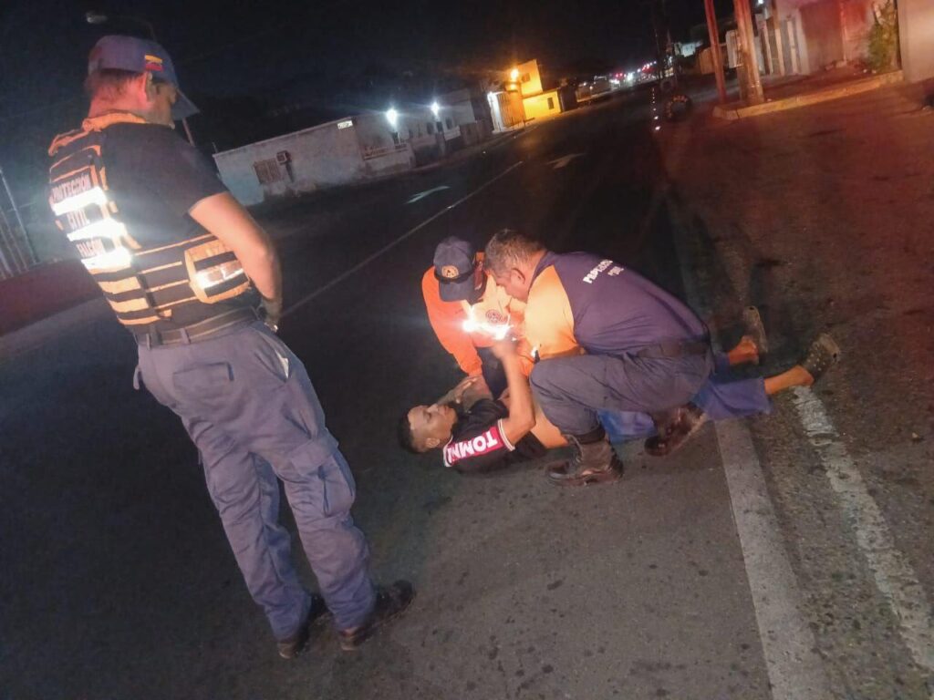 Al llegar al lugar del hecho, en la calle Comercio con Josefa Camejo del sector Caja de Agua, encuentran a un hombre tendido en el suelo.