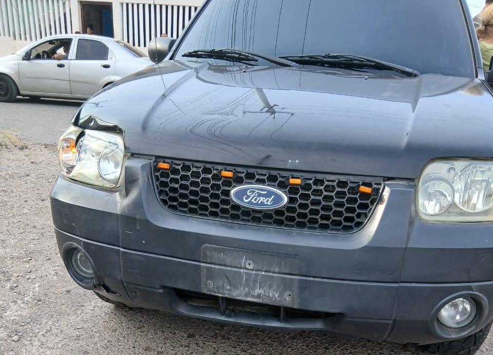 La colisión entre una moto Escuda y un vehículo Ford de color negro dejó a los tripulantes de la unidad motorizada lesionados.