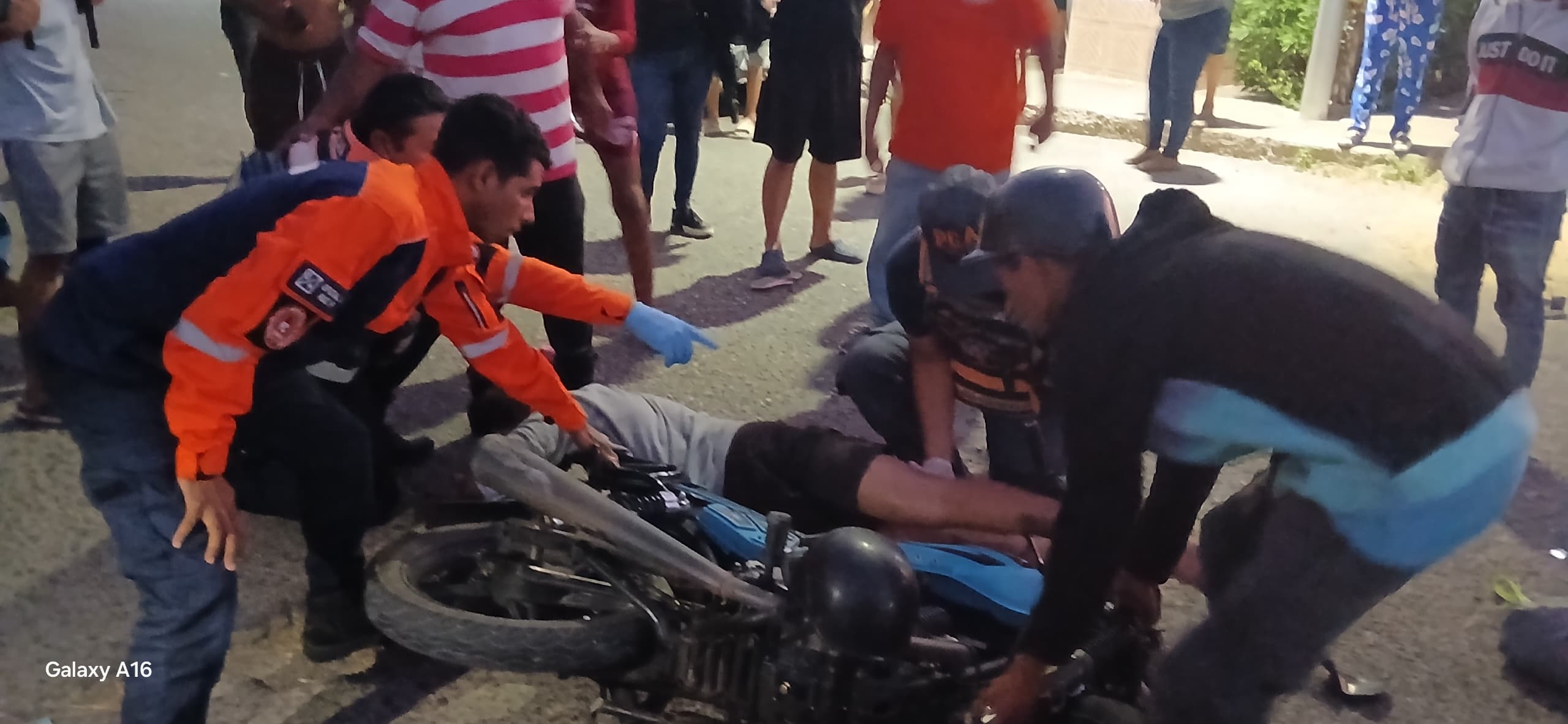 Los vehículos involucrados, una moto Bera SBR de color azul y un carro Ford Pickup de color azul.