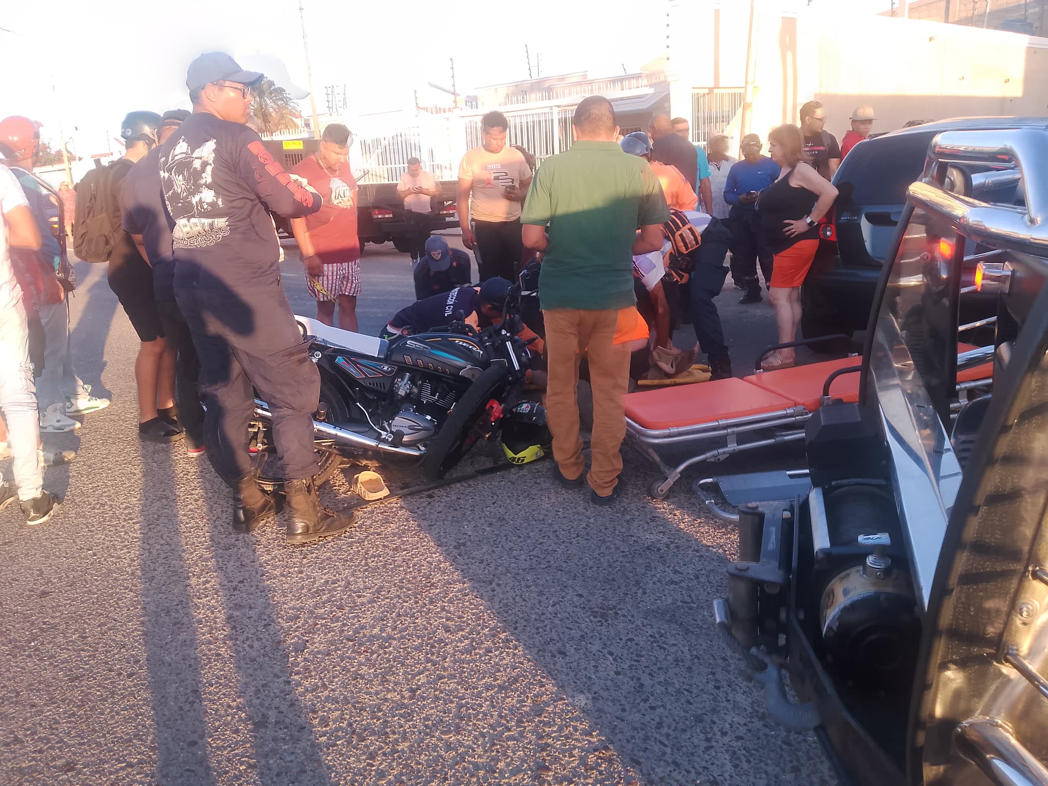 El conductor de la moto quedó identificado como Germy Azuaje de 19 años. Barbero con residencia en Bella Vista. Presentó fractura de fémur y escoriaciones múltiples.