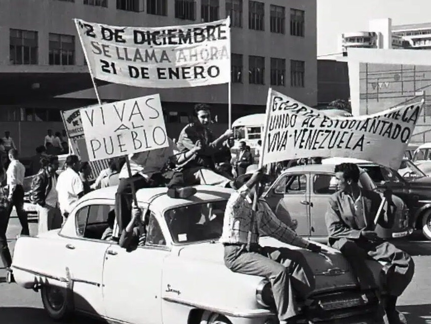En contexto, la madrugada del 23 de enero de 1958 llegó a su fin la dictadura del general Marcos Pérez Jiménez y la jornada pasó a la historia como el día de la recuperación de la democracia en Venezuela.