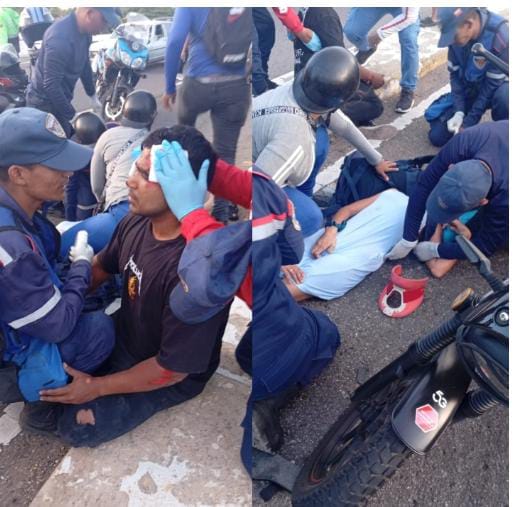 Los dos quedaron tendidos en el pavimento. Funcionarios de la Policía Nacional Bolivariana resguardaron el lugar del accidente, cercano al sector La Rosa, diagonal al antiguo Hiper Bodegón Vessada. La ambulancia 7.12 de Bomberos de Falcón, eje Paraguaná, llegaron a las 6.10 de la tarde a prestar la atención prehospitalaria.