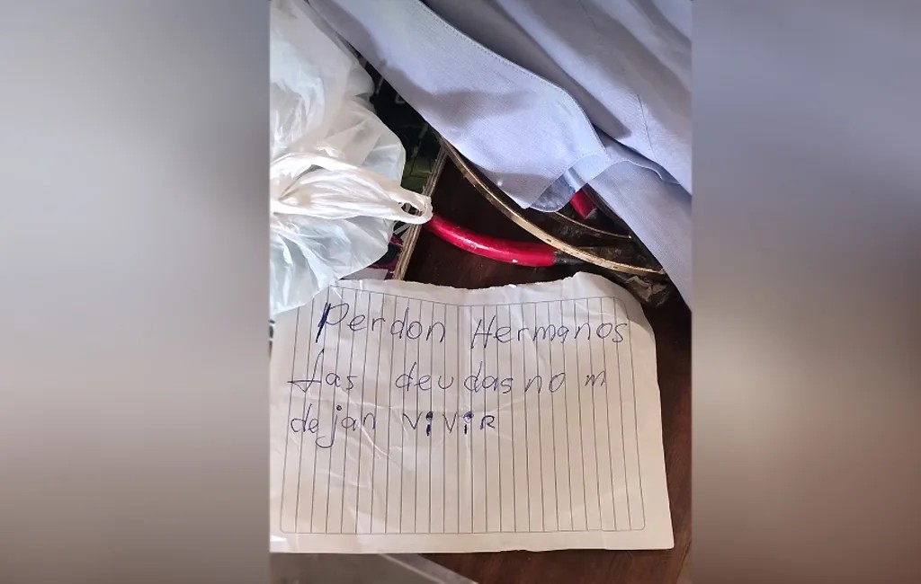 En el lugar del suceso, las autoridades hallaron una nota manuscrita en la que el fallecido pedía perdón a sus familiares y explicaba que agobiantes problemas económicos motivaron su decisión.