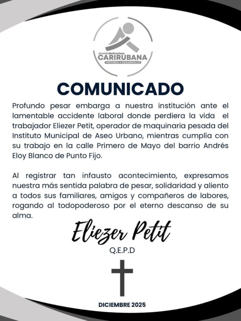 La víctima se llamaba Eliezer Petit con residencia en Adaure del municipio Falcón. Tenía cuatro años trabajando en Imaseo.